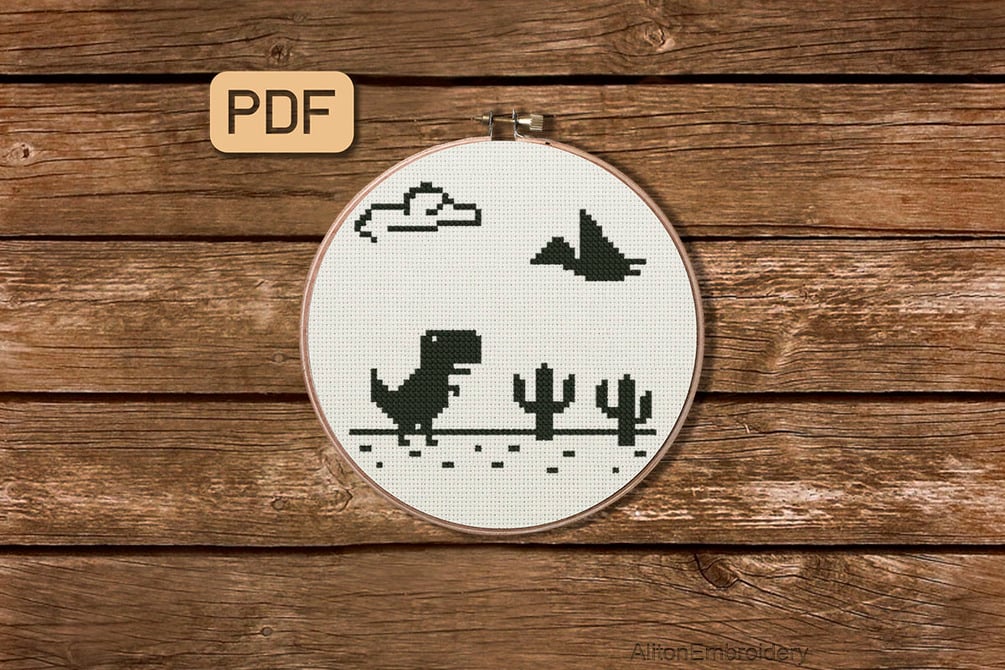 Dinosaur Game Chrome Cross Stitch Pattern